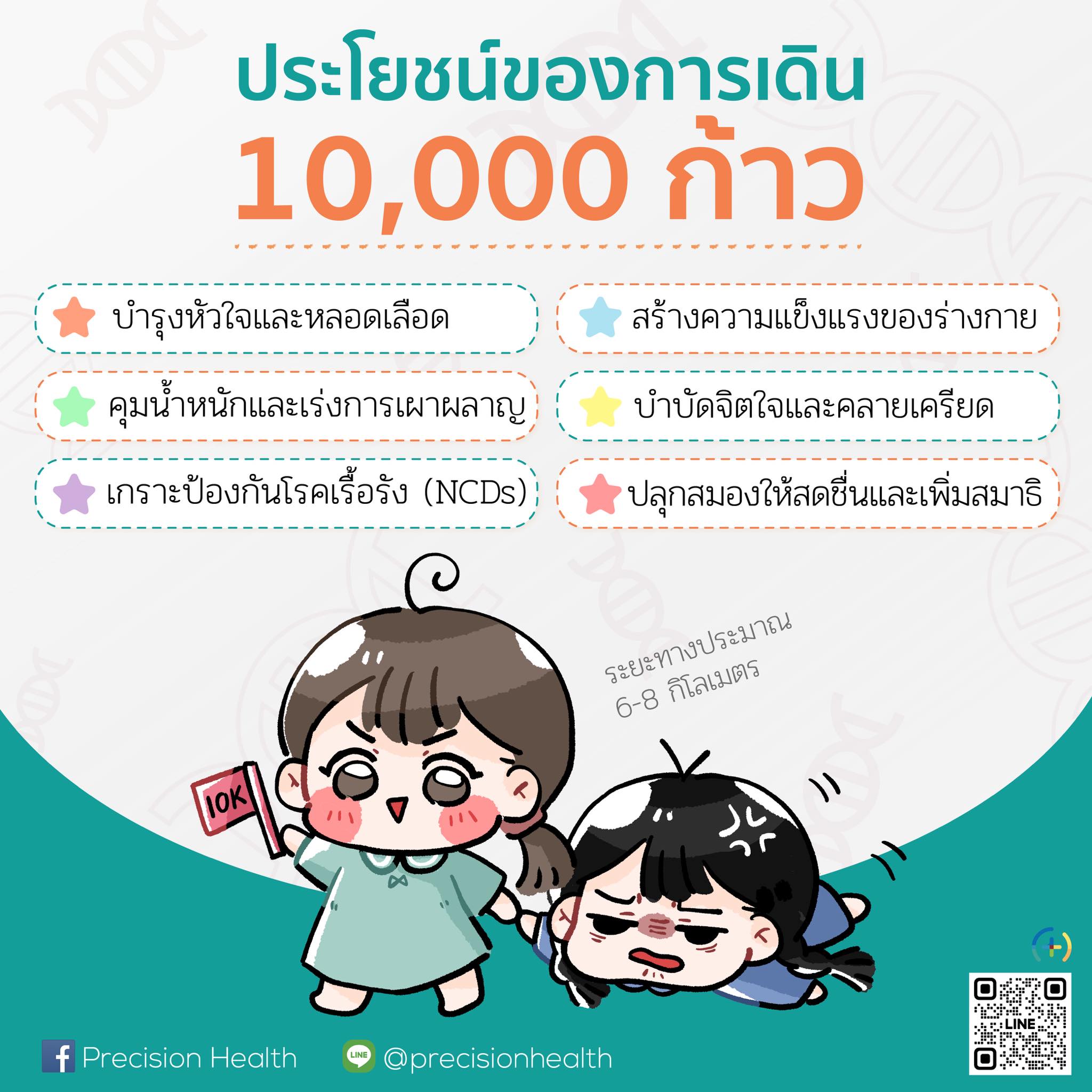 การเดินวันละ 10,000 ก้าว (ระยะทางประมาณ 6-8 กิโลเมตร) ไม่ได้เป็นเพียงแค่เทรนด์สุขภาพ แต่คือการลงทุนเพื่อสุขภาพระยะยาวที่ทำได้ง่ายและปลอดภัย โดยมีประโยชน์ที่ครอบคลุมในทุกมิติดังนี้