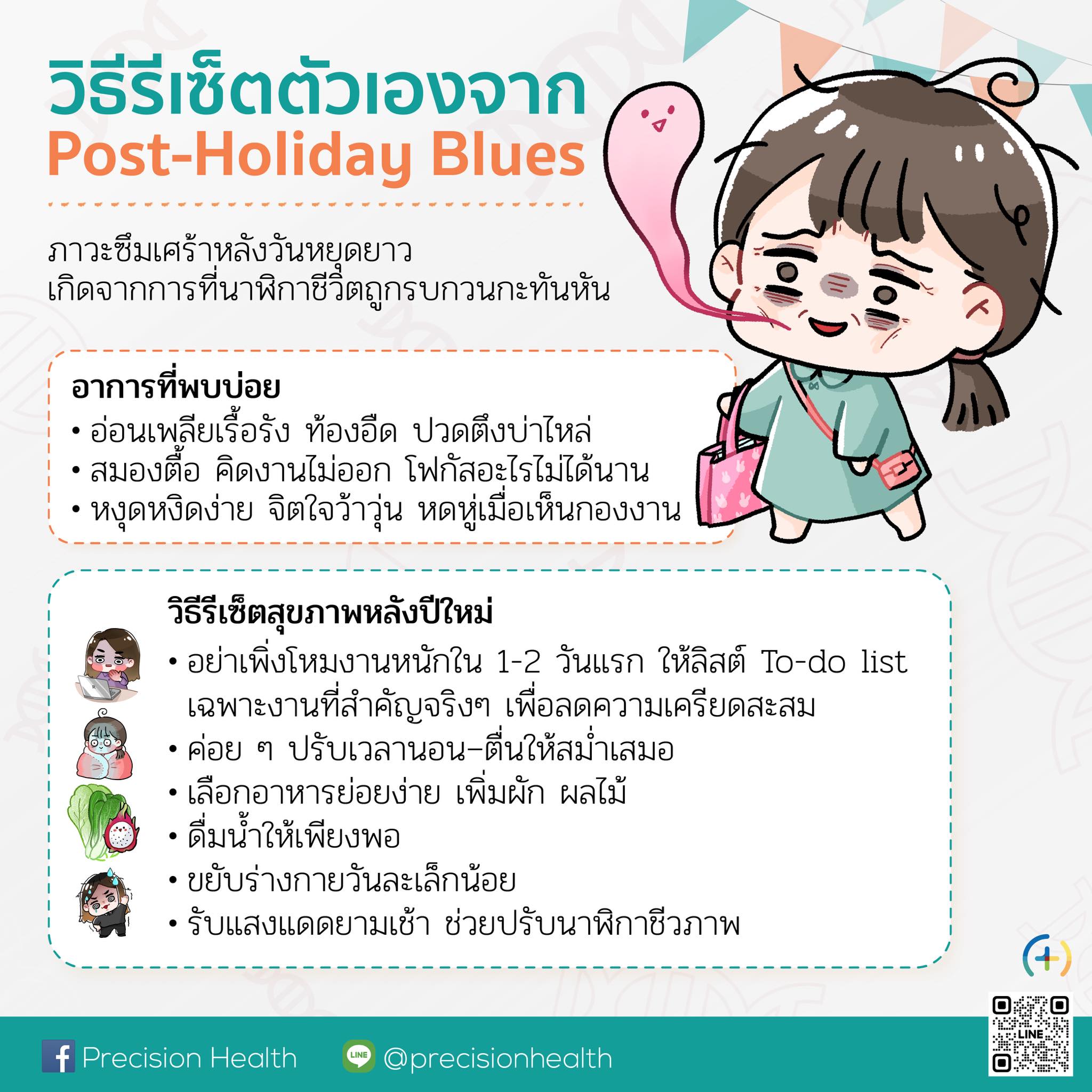 ร่างกายไม่ใช่เครื่องจักรที่กดปุ่มเปิด-ปิดแล้วจะทำงานได้ทันที แต่ร่างกายต้องการเวลาในการปรับตัวหลังช่วงหยุดยาว การดูแลตัวเองวันละเล็กน้อย จะช่วยให้สุขภาพกลับมาแข็งแรง พร้อมใช้ชีวิตและทำงานได้อย่างเต็มที่ตลอดทั้งปี
