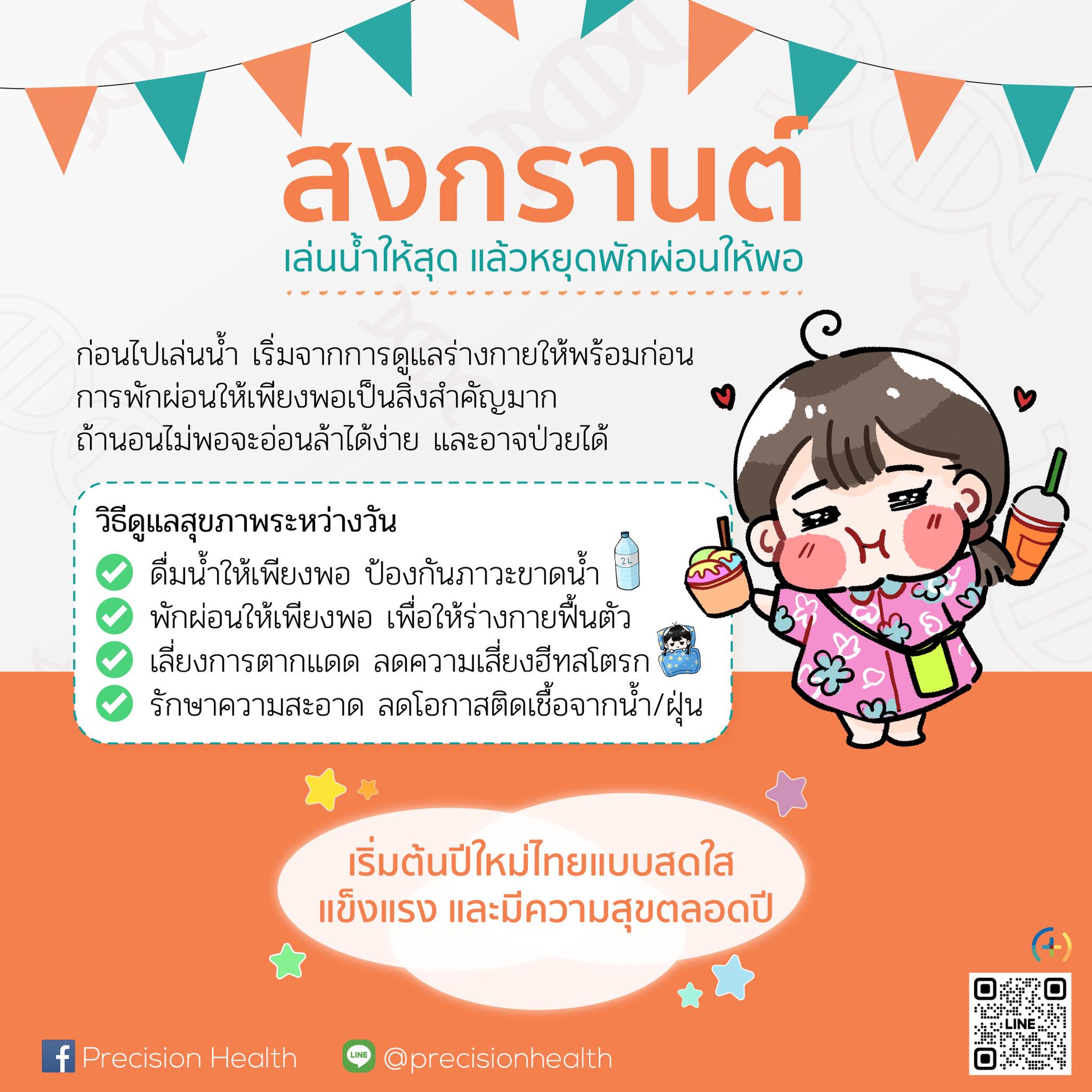 การพักผ่อนให้เพียงพอเป็นสิ่งสำคัญมาก เพราะช่วงสงกรานต์มักมีกิจกรรมต่อเนื่องหลายวัน