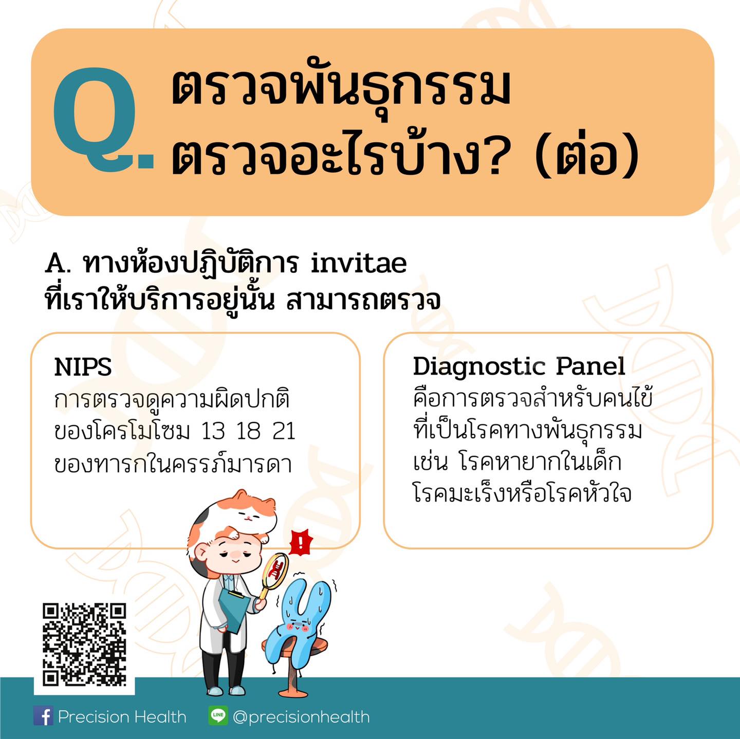 Q : การตรวจพันธุกรรม นั้นตรวจอะไรบ้าง